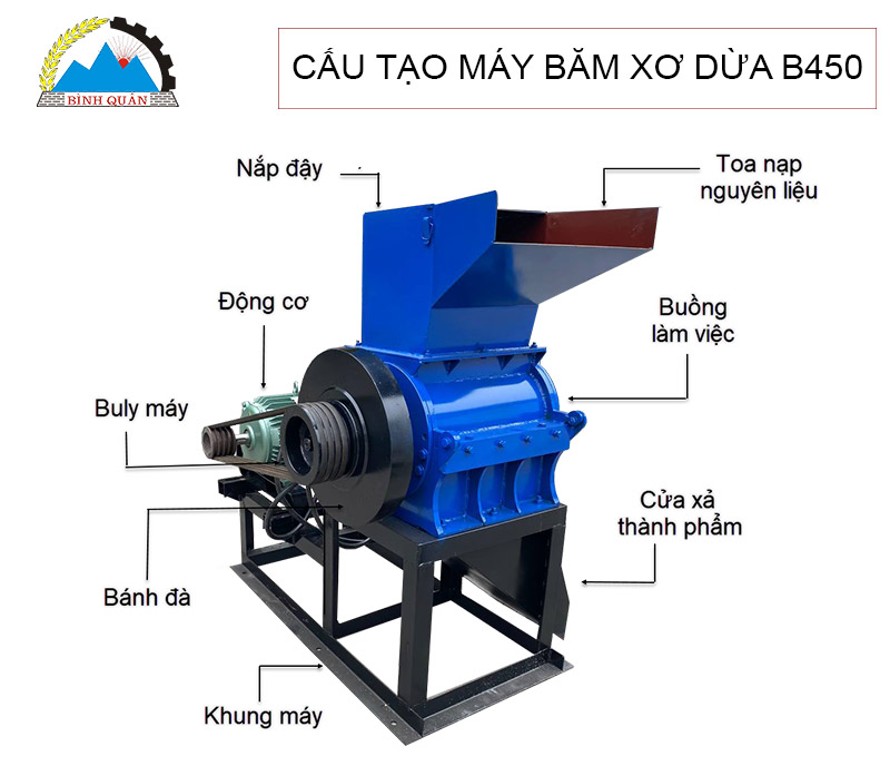 Cấu tạo của máy băm xơ dừa B450