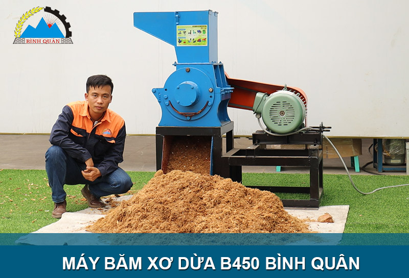 Máy băm xơ dừa B450 phiên bản máy mới do công ty Bình Quân sản xuất chuyên băm vỏ dừa khô, dừa tươi thành dạng mùn số lượng lớn