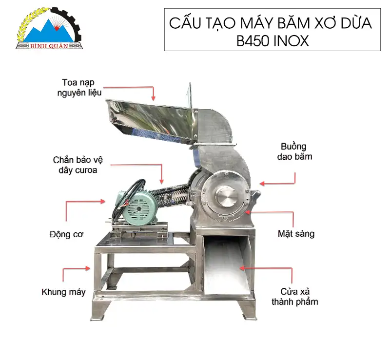 Cấu tạo máy băm xơ dừa B450 inox