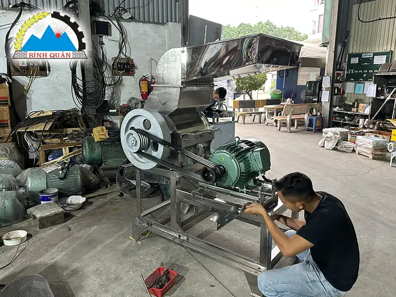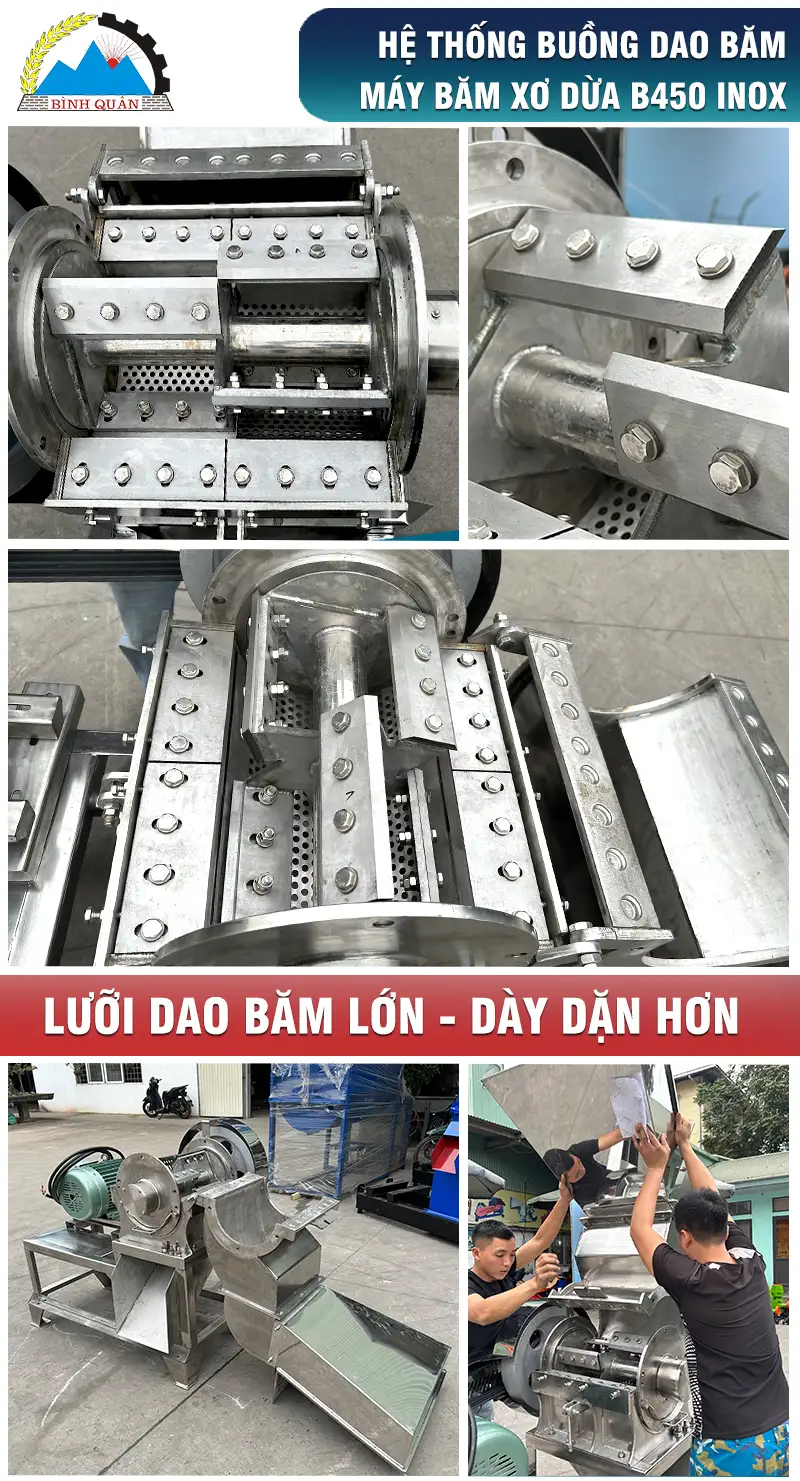 Máy băm xơ dừa B450 inox do công ty Bình Quân sản xuất - giải pháp mới giúp bà con tiết kiệm công sức - tạo thêm thu nhập