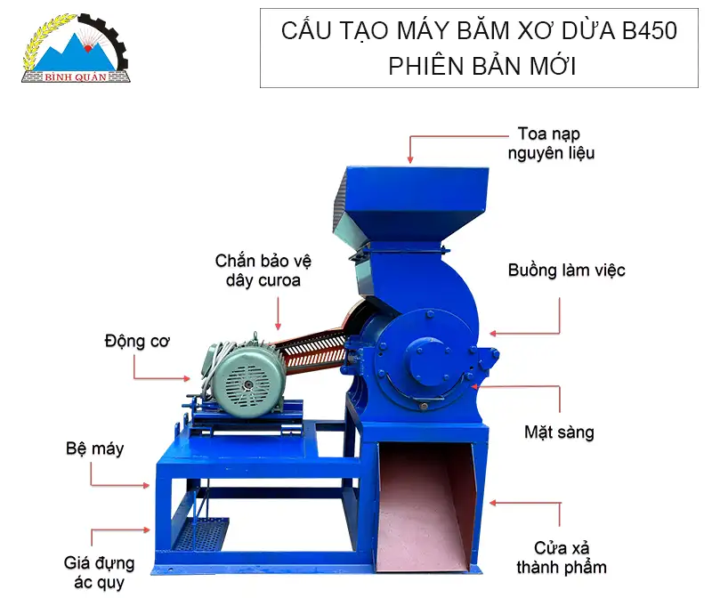 Cấu tạo máy băm xơ dừa B450 phiên bản mới