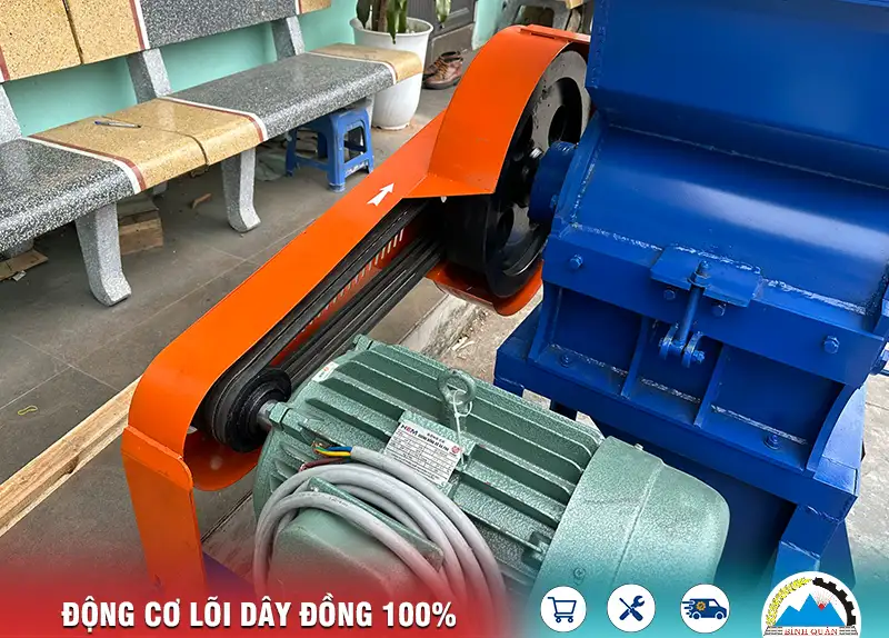 Máy băm xơ dừa 3 pha sử dụng động cơ 15kw motor lõi dây đồng 100% cho năng suât cao, thích hợp sử dụng tại các hộ gia đình, cơ sở tái chế quy mô vừa và lớn