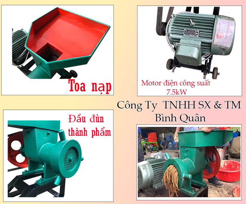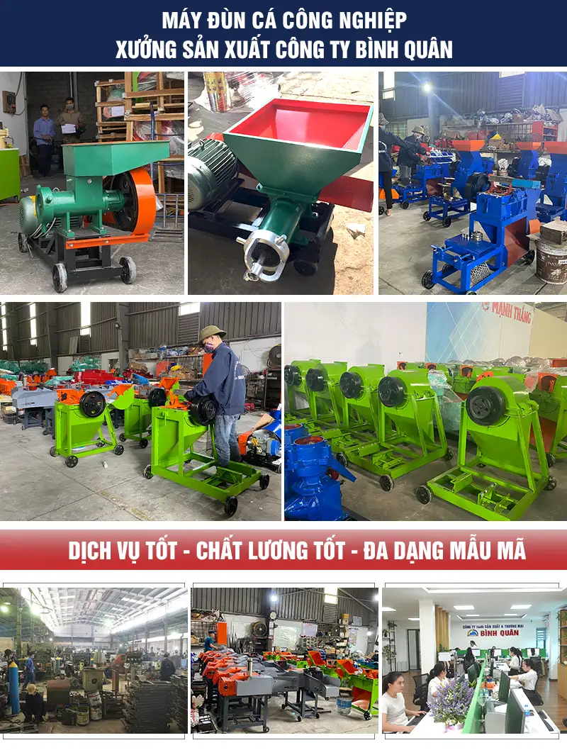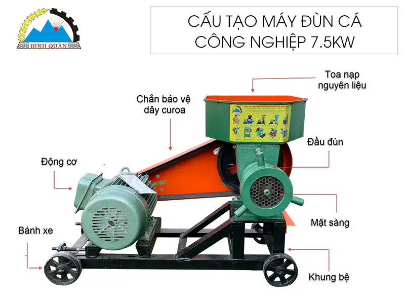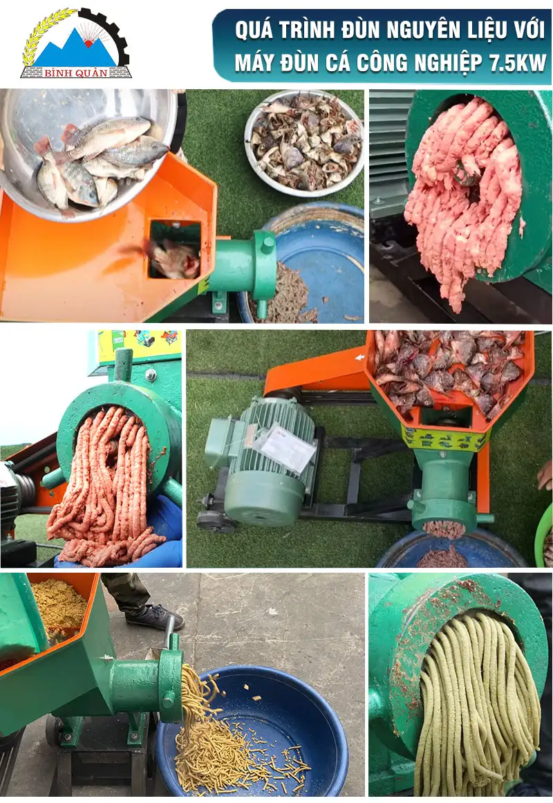 Máy đùn cá công nghiệp 7.5kw do công ty Bình Quân sản xuất - lựa chọn hoàn hảo cho các hộ chăn nuôi quy mô vừa và lớn.