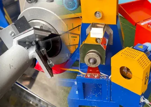 Bao gồm 4 lưỡi dao cắt cám có thể điều chỉnh độ ngắn – dài hay viên cám tròn – dẹt trước khi viên cám rơi xuống cửa xả.