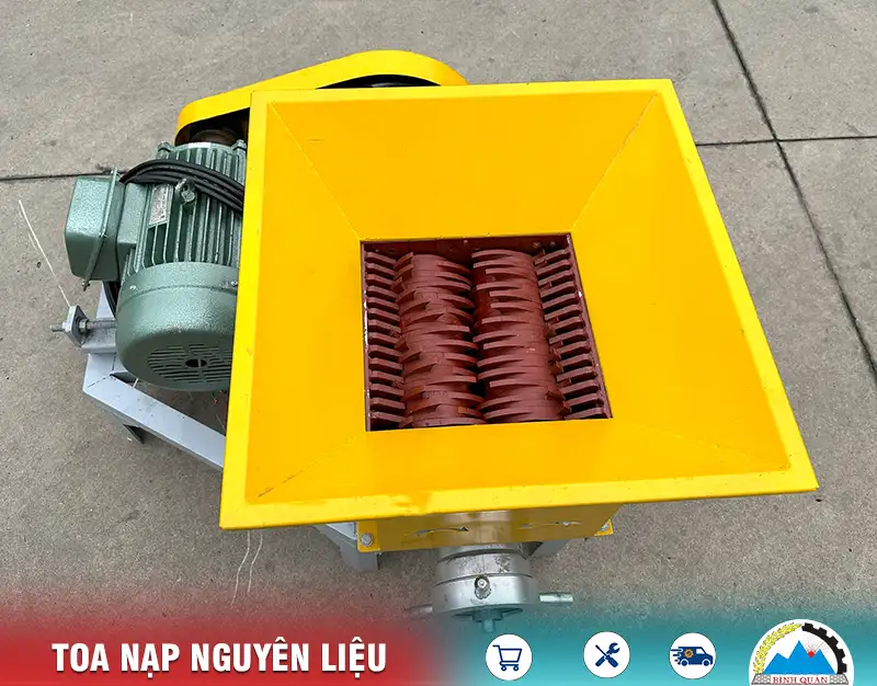 Không chỉ hút khỏe, bộ trục cuốn còn có khả năng chống kẹt: nếu gặp phải xương cứng hoặc mảnh vỏ sò, vỏ ốc nhỏ, các răng thép sẽ tách nguyên liệu và đưa xuống nhẹ nhàng, giảm tải cho trục nghiền và giúp máy bền hơn.