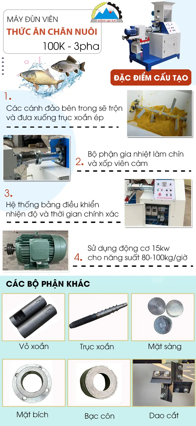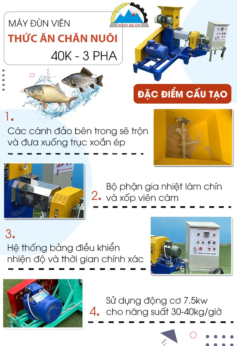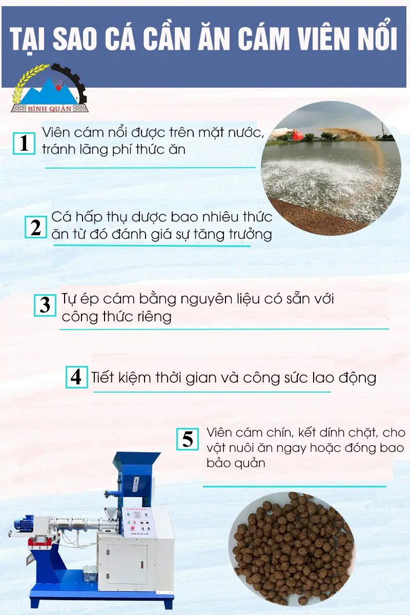 Những tính năng của máy ép cám viên nổi cho cá Bình Quân