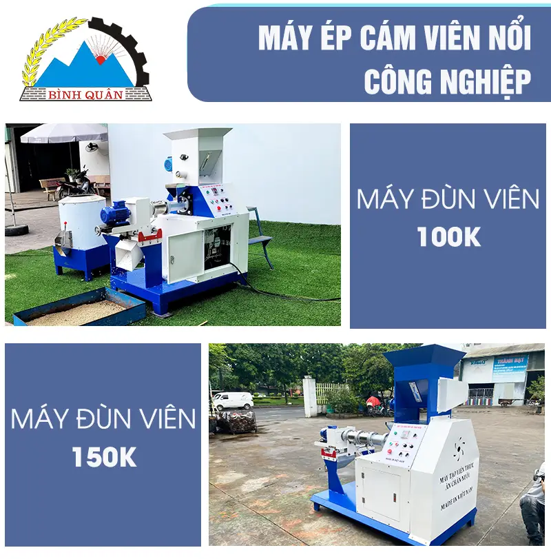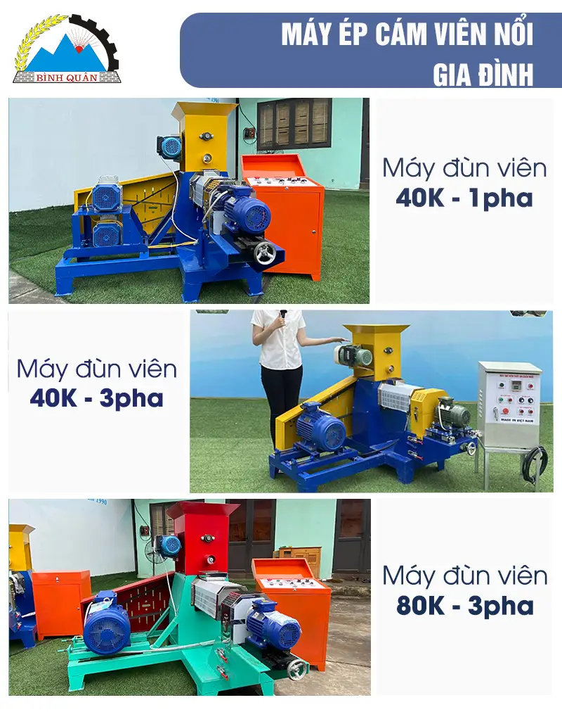Hiện nay, tại công ty Bình Quân sản xuất được 2 loại: máy ép cám viên nổi gia đình và máy ép cám viên nổi công nghiệp.