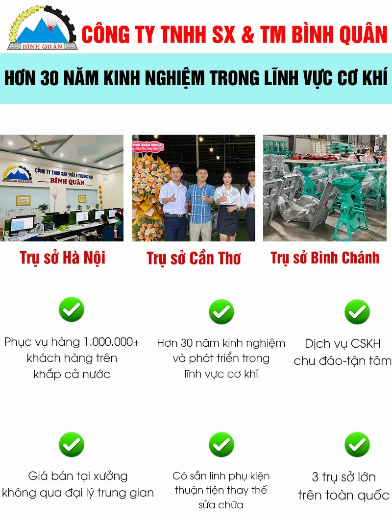 Công ty TNHH SX & TM Bình Quân là đơn vị chuyên sản xuất máy đùn cám viên nổi và các dòng máy chăn nuôi khác với hơn 30 năm xây dựng và phát triển trong lĩnh vực cơ khí.