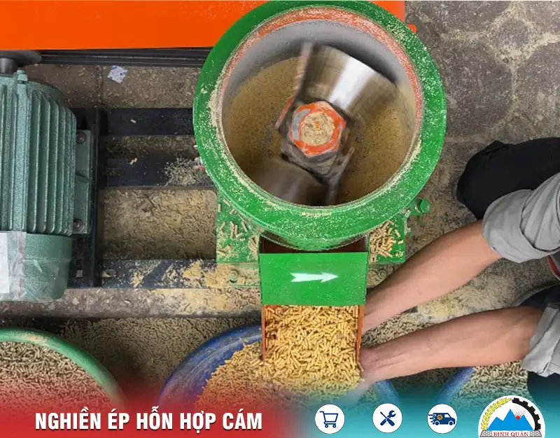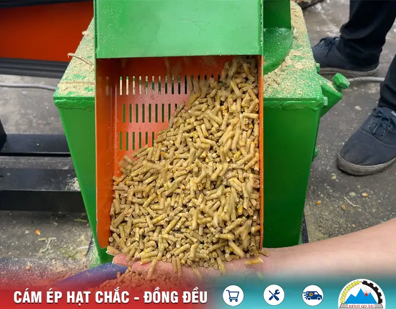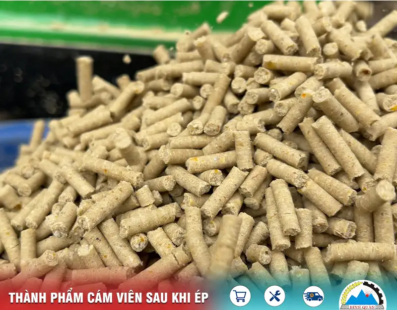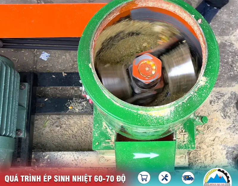 Quá trình ép các bộ phận làm việc tạo ma sát sinh nhiệt khoảng 60 - 70 độ C, viên cám cho ra có độ ấm nóng có thể cho vật nuôi dùng luôn