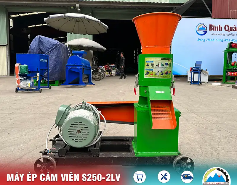 Máy ép cám viên S250-2LV thế hệ mới, với cơ chế tự động nghiền - ép hỗn hợp bột cám tạo thành thức ăn dạng viên.
