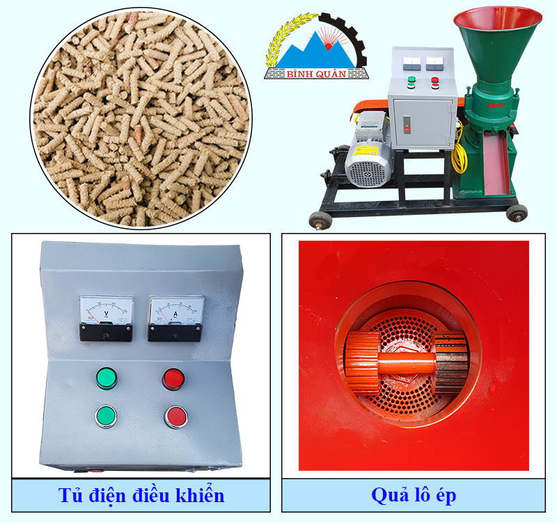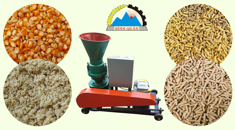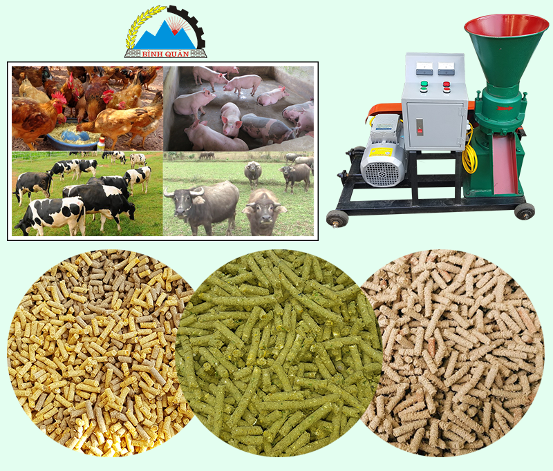 Tính năng: Máy nghiền - trộn - ép các loại bột cám, rau, cua, cá nhỏ thành viên cám chăn nuôi.