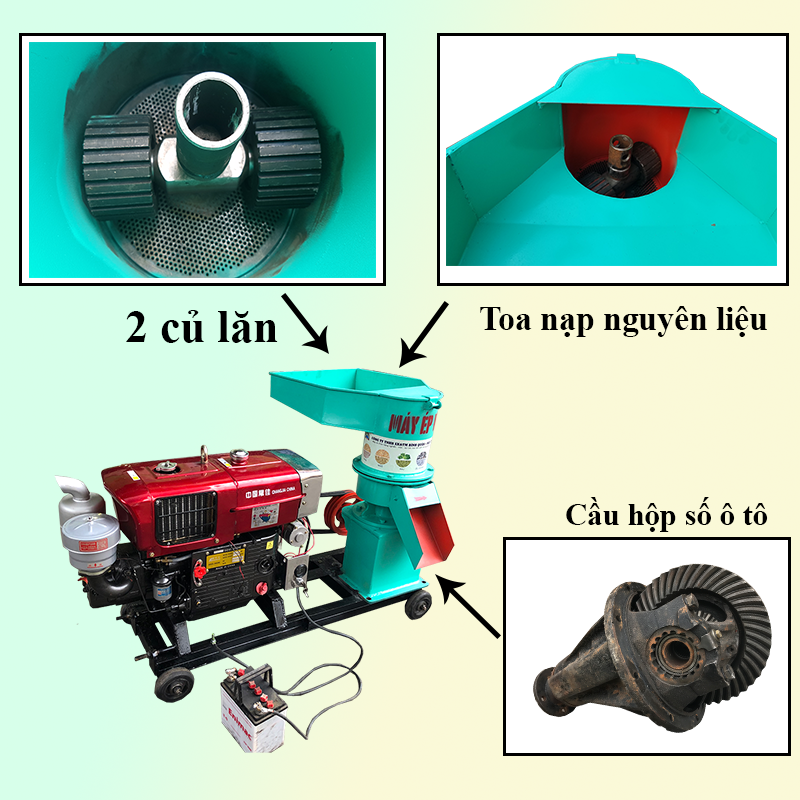 Đặc điểm nổi bật của các dòng máy ép cám viên của Công Ty Bình Quân là lắp bộ phận cầu hộp số ô tô hỗ trợ cho máy chạy ổn định, giảm tải máy không bị ì khi nghiền những dạng nguyên liệu nặng tải