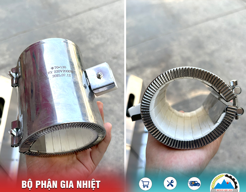 Bộ phân gia nhiệt giữ vai trò lên nhiệt làm nóng và duy trì nhiệt độ trong suốt quá trình ép.