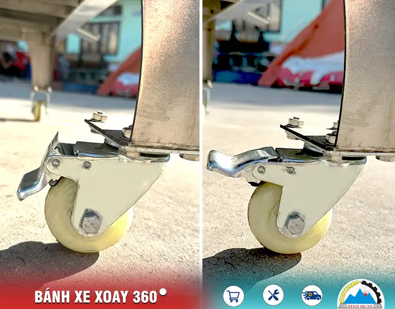 2 bánh xe phía trước có chốt khóa cố định chắc chắn không gây rung lắc trong quá trình vận hành