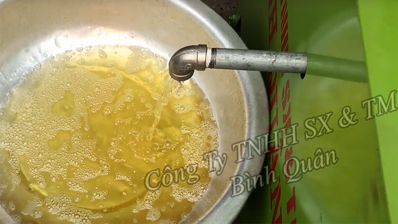 Dầu ngay khi được ép bộ hút chân không tạo áp lực hút toàn bộ dầu qua lưới lọc để lại cặn bã ở lại trên bề mặt vải và thu về thành phẩm.