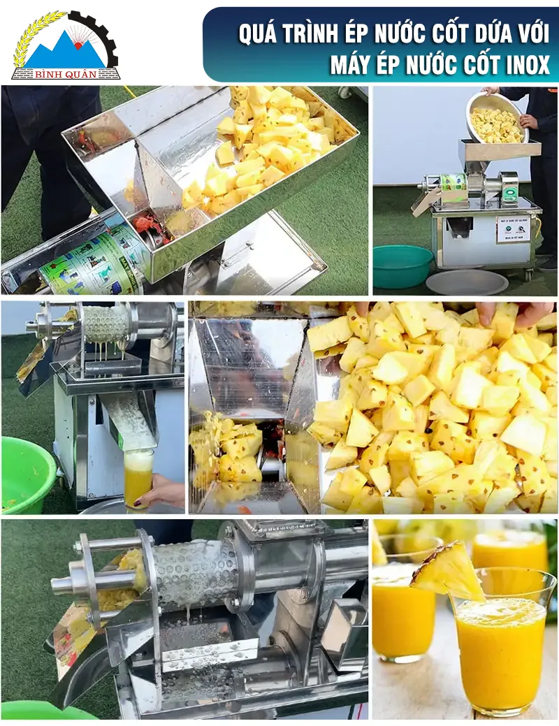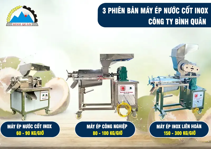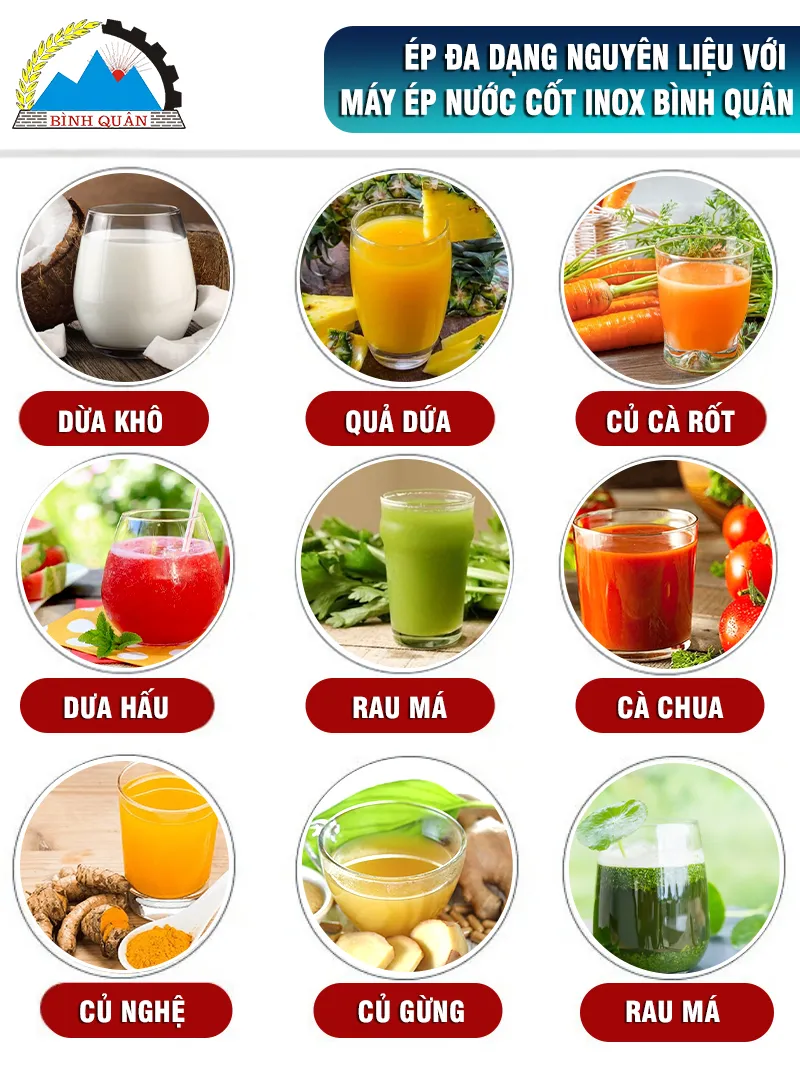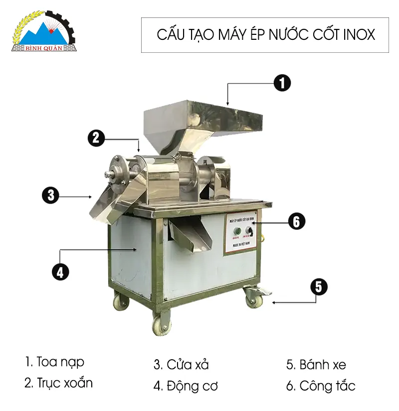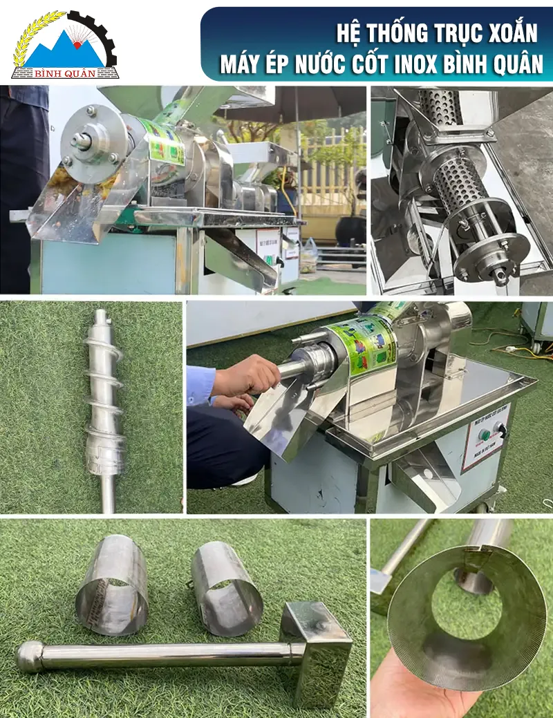 Máy ép nước cốt do Bình Quân sản xuất - được làm inox cao cấp chuyên dùng xay ép nước cốt các loại rau củ quả được các hộ kinh doanh, cơ sở chế biến tinh dùng