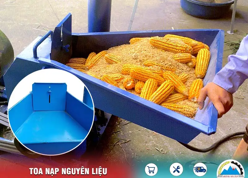 Phía trước miệng toa gắn thanh chắn giúp kiểm soát chất lượng nguyên liệu đầu vào tránh gây đầy tải máy