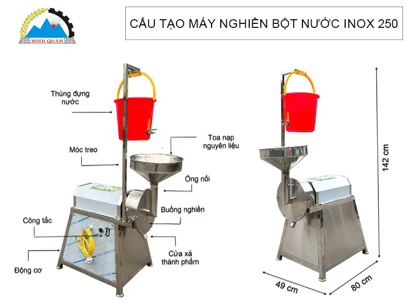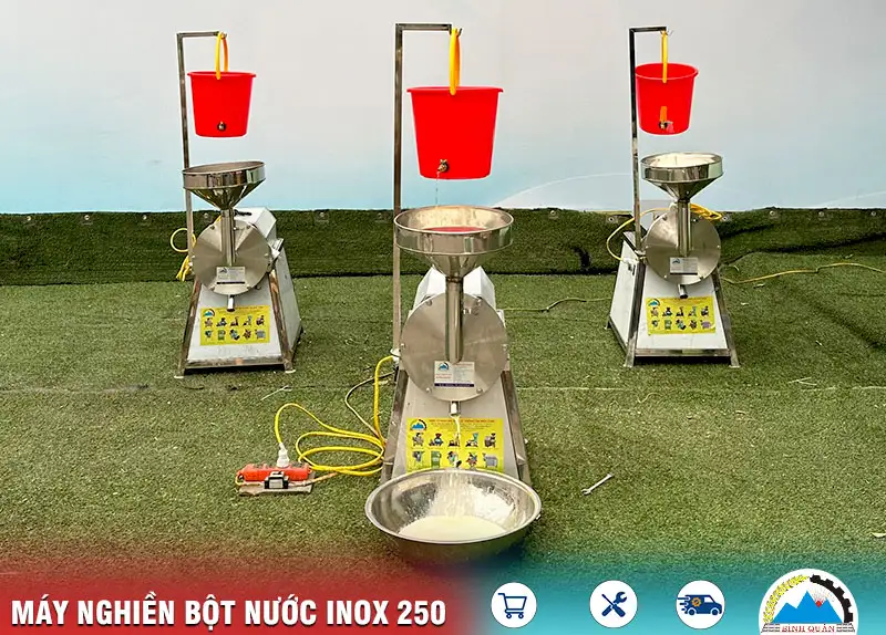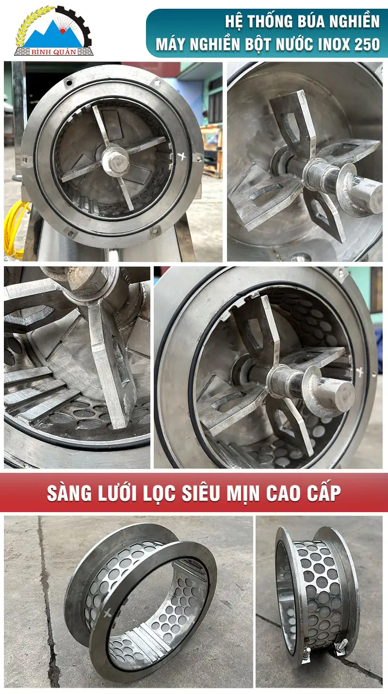 Máy nghiền bột nước inox 250 do công ty Bình Quân sản xuất chuyên dùng nghiền gạo ẩm thành bột nước