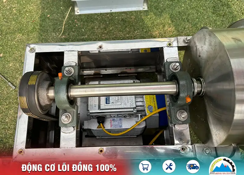 Kết hợp bao quanh thành là lưới sàng mịn lọc phần phần cặn, phần nước cốt sẽ đi sàng theo cửa xả thoát ra ngoài