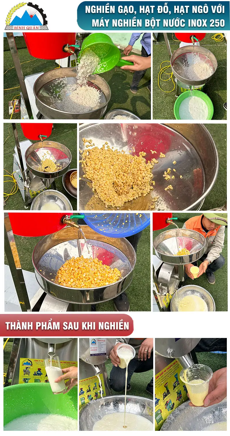 Quá trình nghiền tự động, máy nghiền đa dạng các loại gạo ngâm, hạt đỗ ngâm; hạt ngô ngâm.. thành bột nước