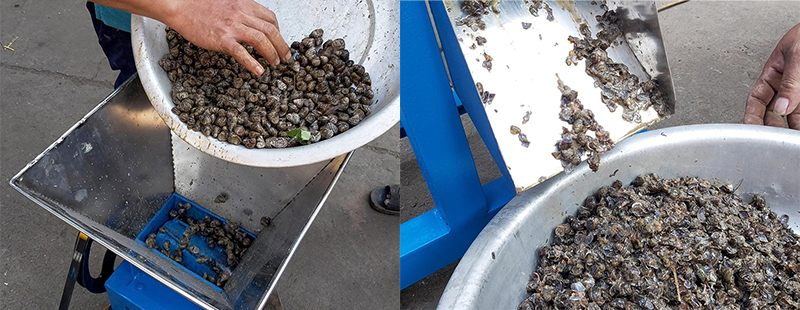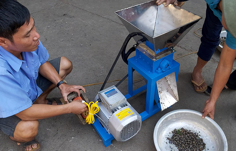 Hiểu được nỗi vất vả của bà con nông dân, Công ty TNHH Sản xuất và Thương mại Bình Quân, đã chế tạo dòng máy nghiền cua ốc, giúp bà con tiết kiệm công sức và thời gian chăn nuôi.