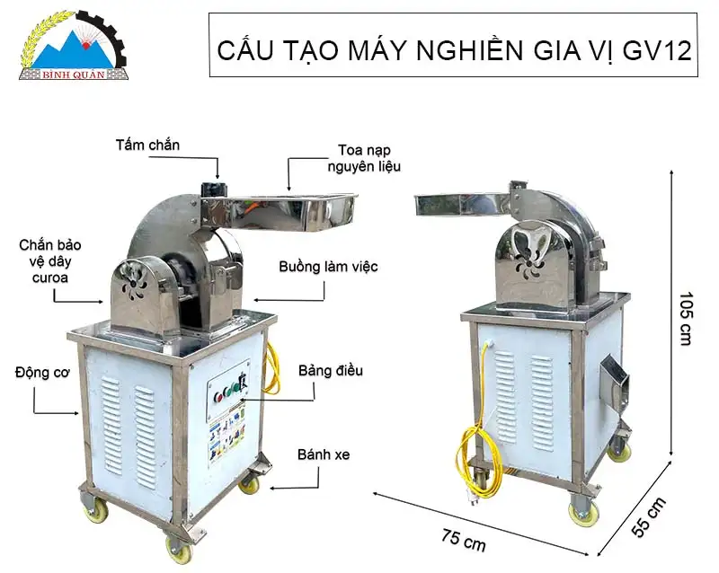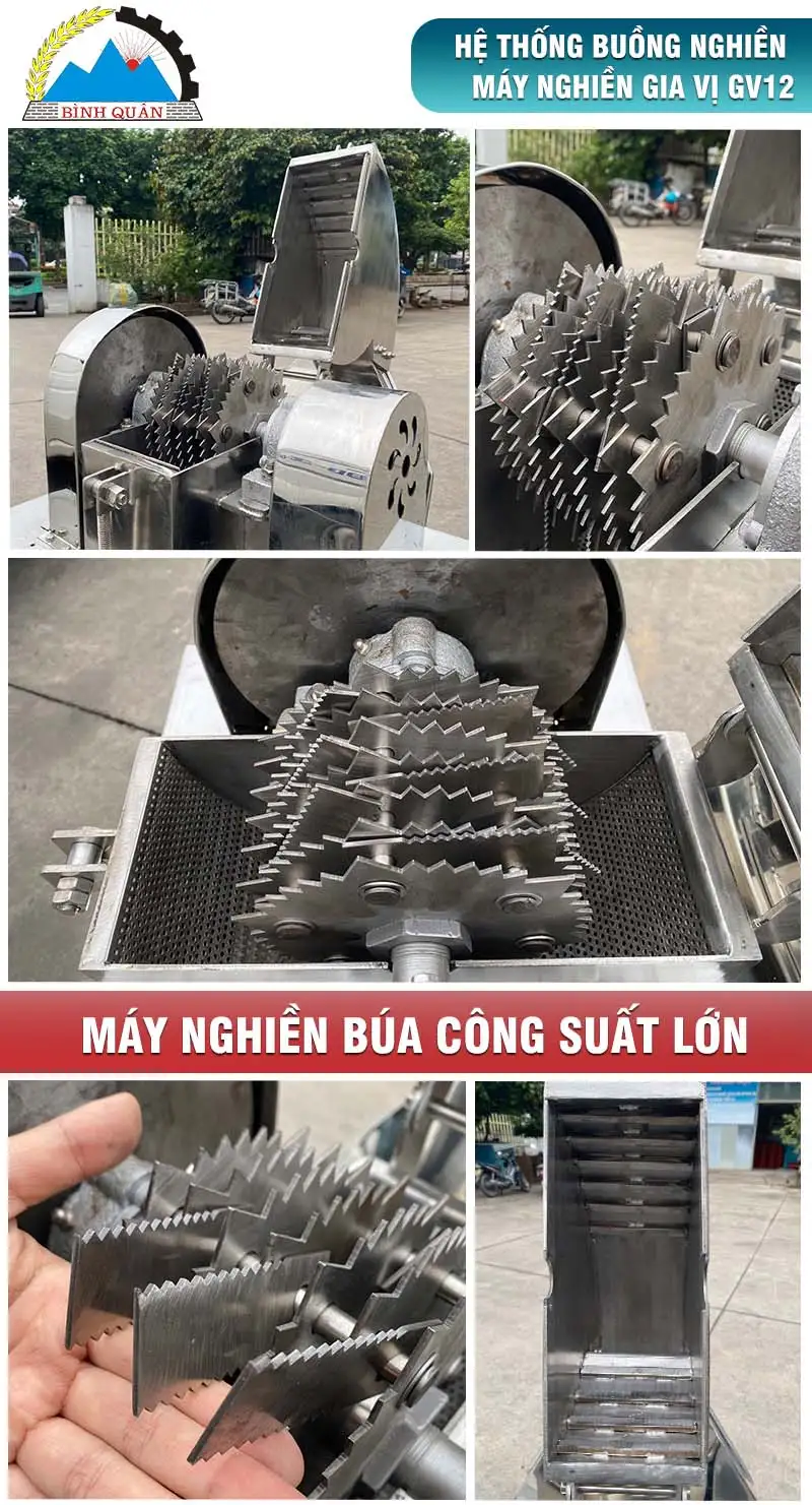 Hiểu được điều đó, công ty Bình Quân đã sản xuất máy nghiền gia vị inox GV12 sử dụng động cơ 3,5kw cho năng suất đạt từ 80 - 150 kg/giờ