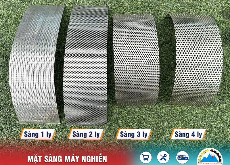 Tùy vào nhu cầu độ mịn của thành phẩm, người dùng có thể lựa chọn lắp 1 trong các mặt sàng 1ly, 2ly; 3ly; 4ly lắp trong máy