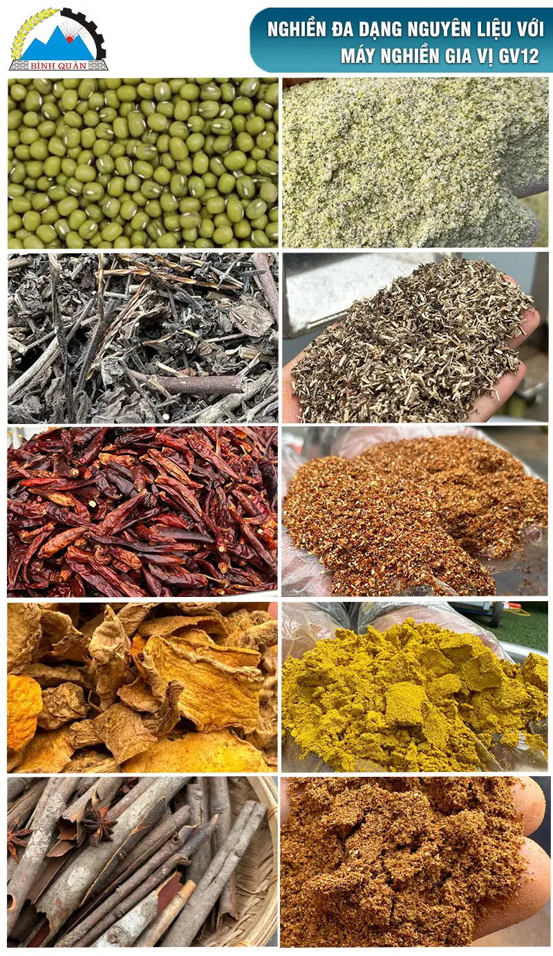 - Máy nghiền đa dạng nguyên liệu: gạo; hạt đỗ; gia vị..