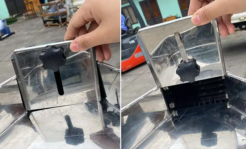 Phía trước cửa nạp có tấm chắn thuận tiện cho người dùng điều chỉnh lượng nguyên liệu nghiền trong quá trình máy hoạt động