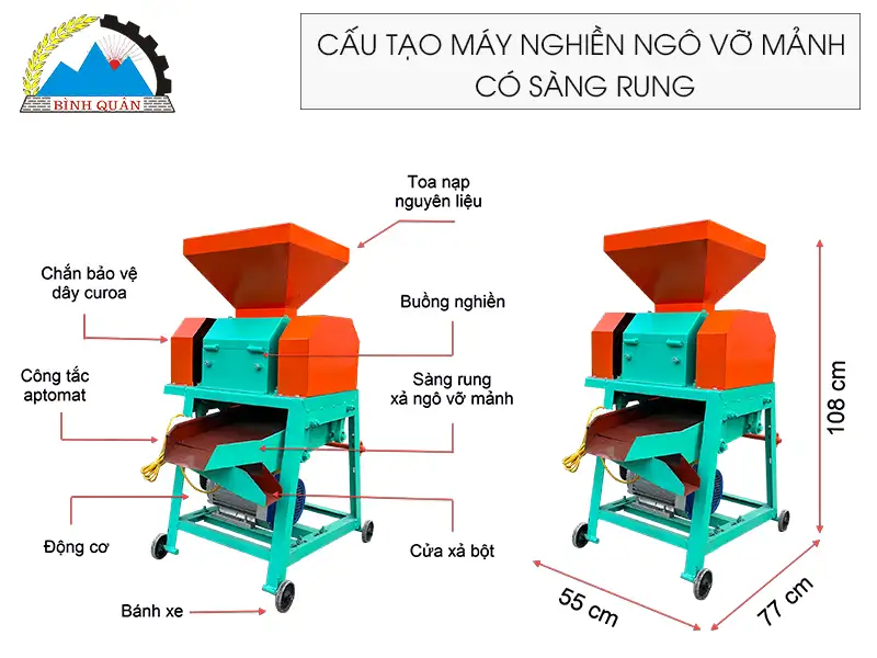 Nghiền nhanh - khỏe - đều với máy nghiền ngô vỡ mảnh phiên bản mới do công ty Bình Quân sản xuất
