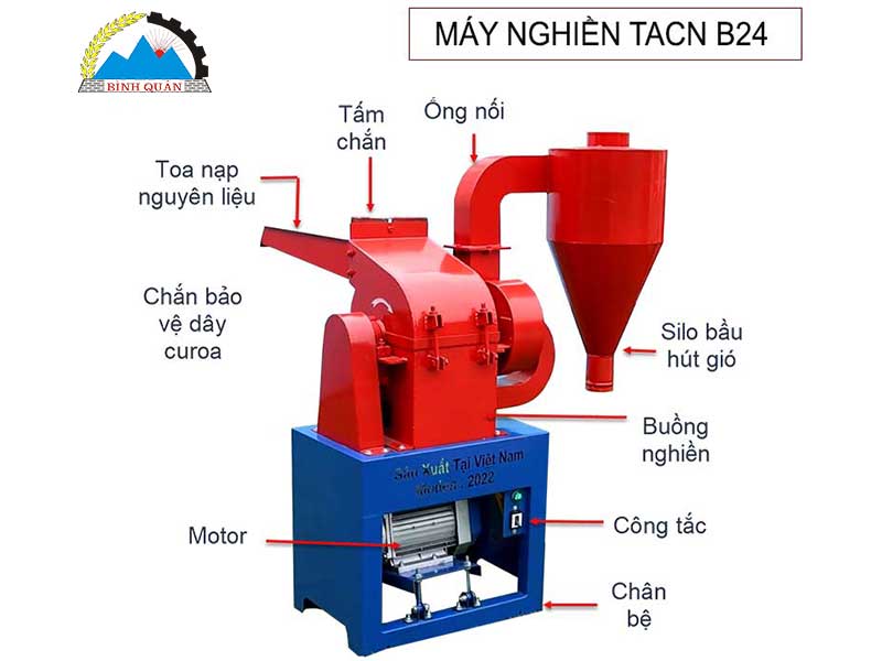 Công ty TNHH Sản xuất và Thương mại Bình Quân xin giới thiệu tới bà con chăn nuôi dòng sản phẩm máy nghiền cám thế hệ mới nhất năm 2022 – Máy nghiền TACN B24 Bình Quân.