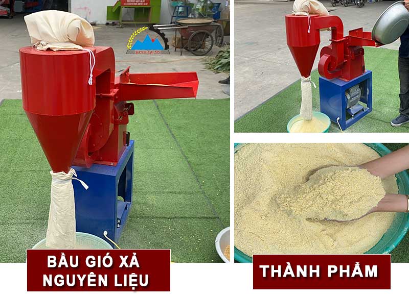 Nguyên liệu sau khi được nghiền nhỏ chui lọt qua sàng lỗ sẽ được bộ phận quạt gió đẩy thành phẩm bột cám sang bên silo bầu gió