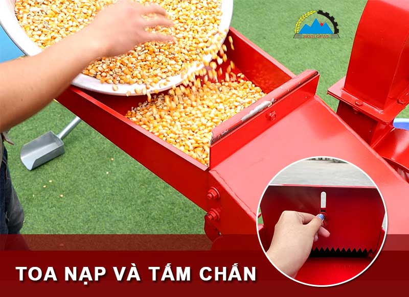 Phía trước cửa nạp sẽ có tấm chắn ngang để điều chỉnh lưu lượng đi từ từ xuống buồng làm việc, tránh gây nặng tải cho máy khi nạp quá nhiều nguyên liệu.