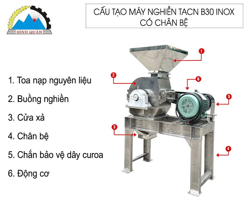 Cấu tạo máy nghiên TACN B30 inox có chân bệ