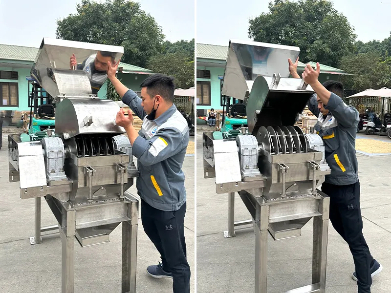Khi mua máy, bà con sẽ được thử nghiệm vận hành máy dưới sự hướng dẫn của đội ngũ kỹ thuật