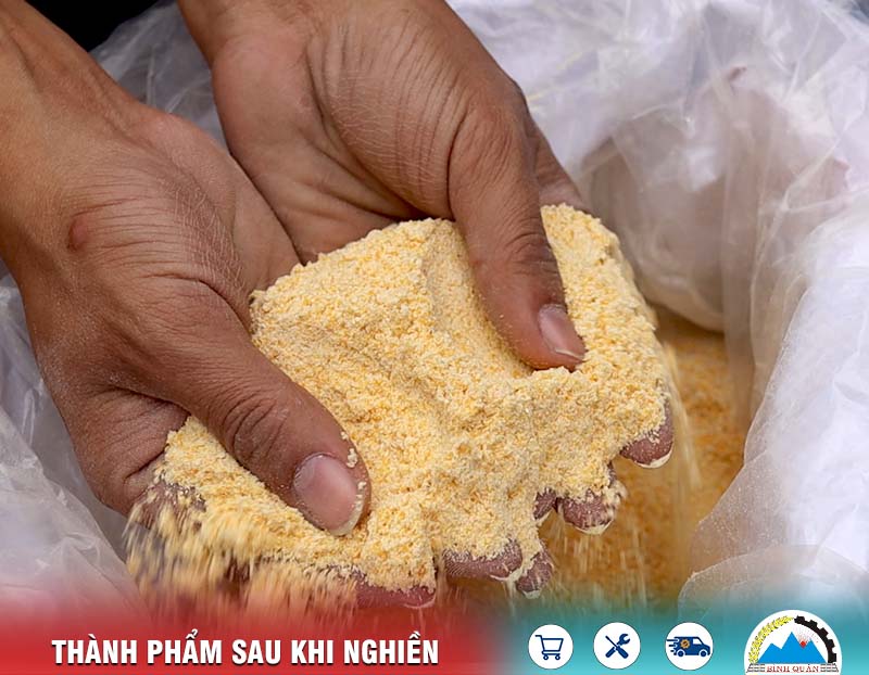 Thành phẩm sau khi nghiền có thể cho vật nuôi dùng ngay hoặc cho vào máy ép cám viên tạo thành thức ăn dạng viên cho gia súc - gia cầm dễ bảo quản