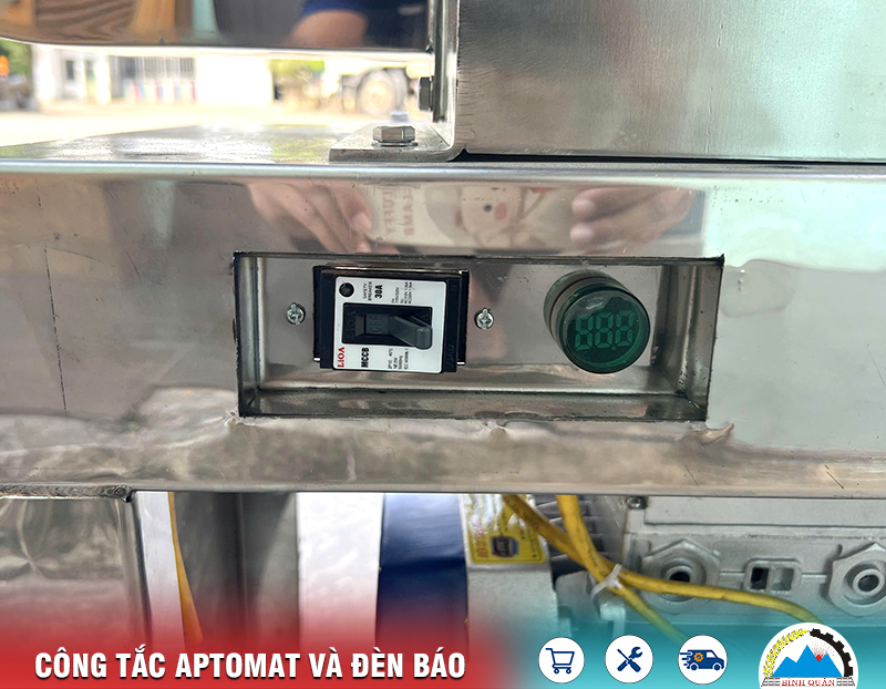 Máy thiết kế công tắc bên khung, bảo vệ mạch điện ngăn các trường hợp quá tải, sụt áp và chống giật đảm bảo an toàn cho người dùng