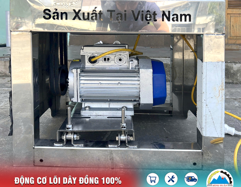 Máy được chế tạo từ inox cao cấp, với phần kết cấu máy được hàn gắn chắc chắn không gây rung lắc trong quá trình vận hành