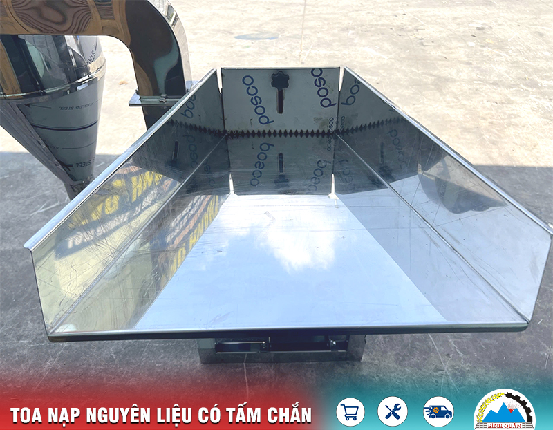Phần toa nạp được thiết kế dạng phễu với sức chứa lớn, đi kèm là tấm ngăn giúp người dùng điều chỉnh lượng nguyên liệu vừa đủ đi xuống buồng nghiền