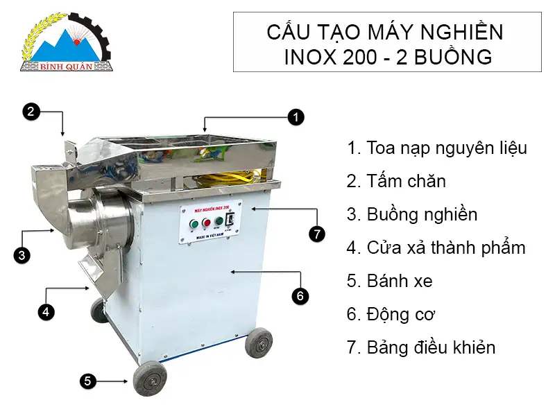 Cấu tạo máy nghiền bột inox 200 - 2 buồng