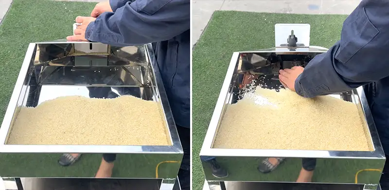 Phía trước cửa nạp có tấm chắn thuận tiện cho người dùng điều chỉnh lượng nguyên liệu nghiền trong quá trình máy hoạt động