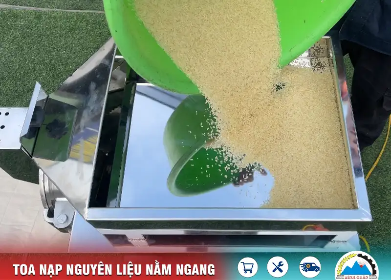 Toa nạp nguyên liệu thiết kế nằm ngang, khoang chứa rộng với sức chứa lên tới khoảng 2 - 5 kg/mẻ ( tùy nguyên liệu )