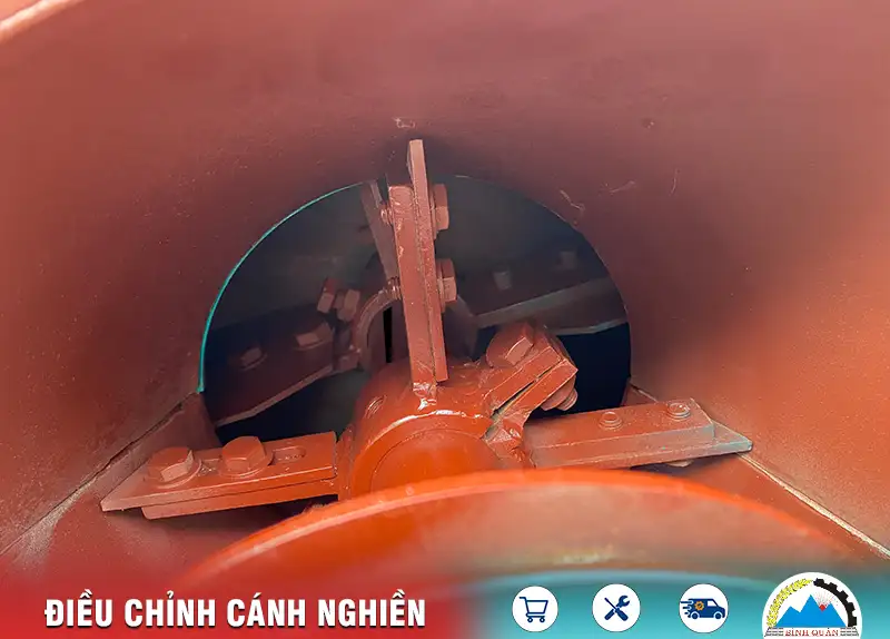 - Muốn nghiền bột mịn: điều chỉnh cánh gạt lùi về búa nghiền