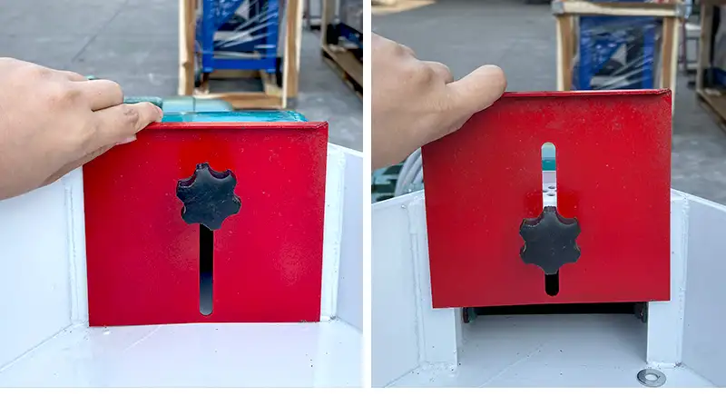 Đặc biệt, phía trước toa có tấm chắn giúp người dùng điều chỉnh lượng nguyên liệu vừa đủ đi xuống buồng nghiền, tránh để nguyên liệu rơi xuống quá nhiều làm nghẹn máy
