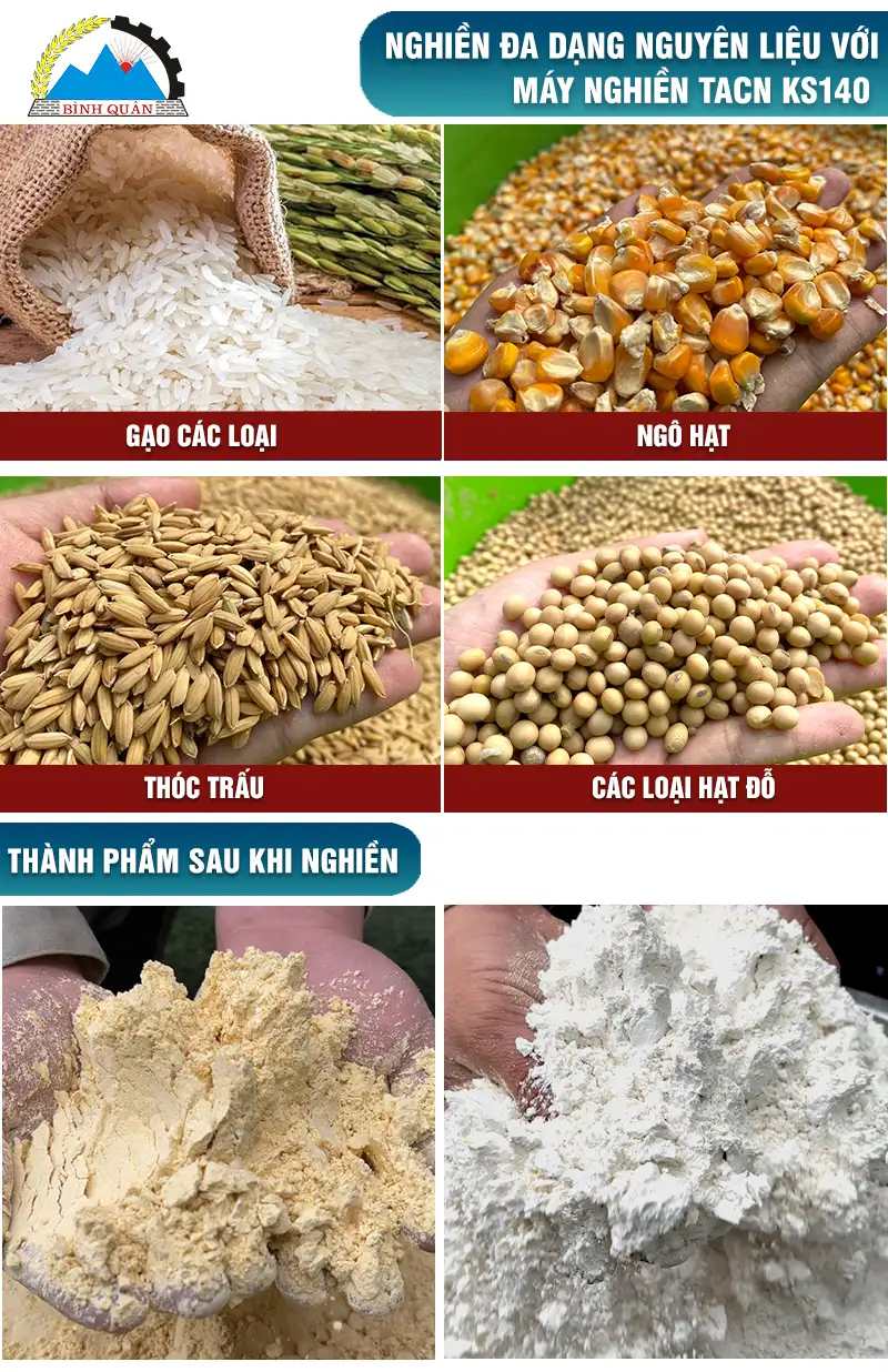 - Nghiền các loại nông phẩm khô: ngô hạt; thóc trấu..