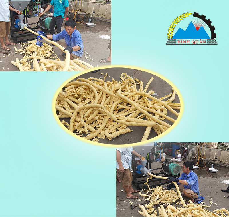 Bộ phận đùn ép quay tròn, nghiền ép, vỡ hạt ngô vừa đùn bỏng ra ngoài dạng hình ống. Quá trình hoạt động của máy sẽ sinh nhiệt , từ đó bỏng đùn ra sẽ chín.