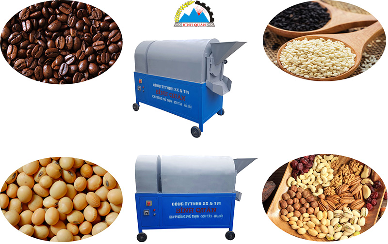 - Tính năng: Máy rang các loại hạt, ngũ cốc, cà phê, rang các sản phẩm theo nhu cầu của khách.