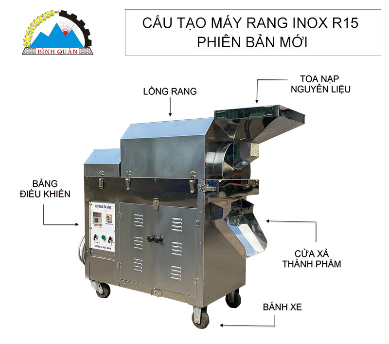 Cấu tạo máy rang inox R15 phiên bản mới