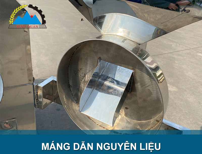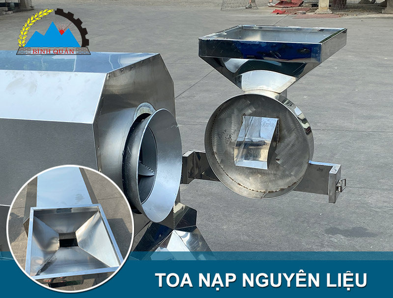 Toa nạp nguyên liệu dạng phễu đứng, với cải tiến mới thiết kế máng dẫn đưa nguyên liệu trực tiếp vào buồng làm việc thuận tiện sử dụng hơn, thay vì phải dùng muôi múc như trước đây.