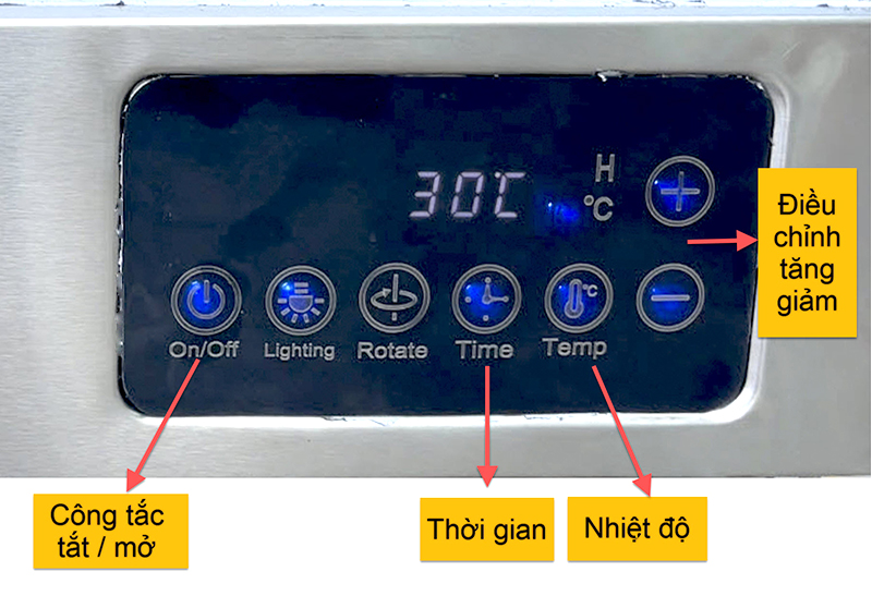 - Sau khi cài đặt xong, máy sẽ tiến hành sấy theo mức nhiệt và thời gian cài đặt